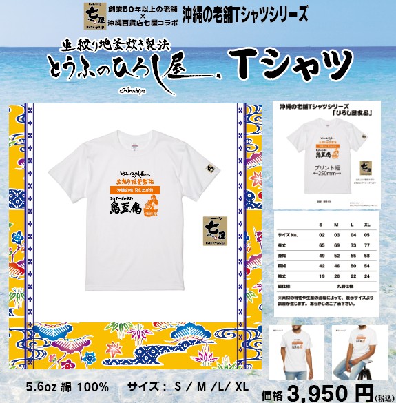 この度、株式会社七屋(ななや)とのコラボで「沖縄の老舗Tシャツシリーズ」として、ひろし屋食品のTシャツを販売することとなりました。